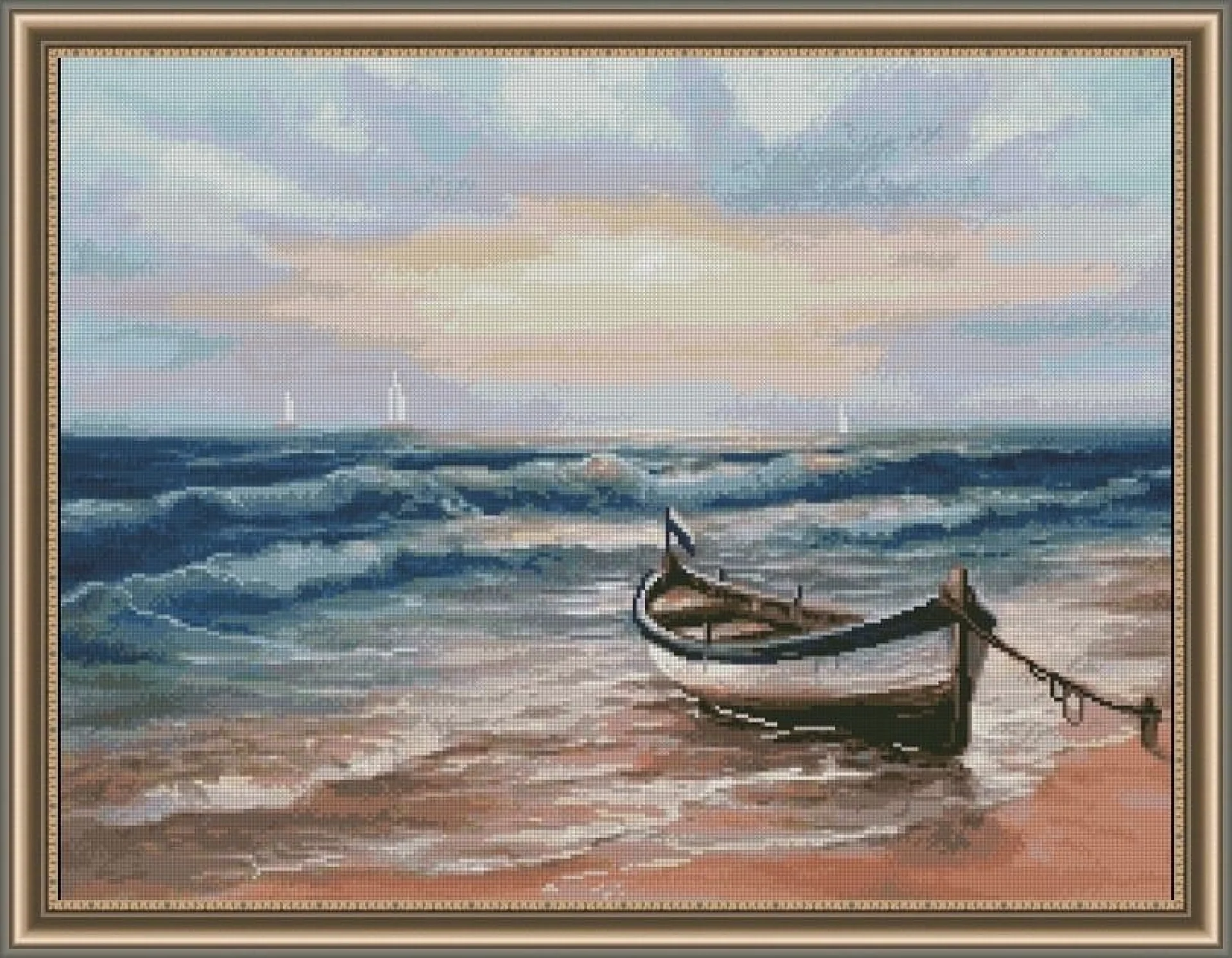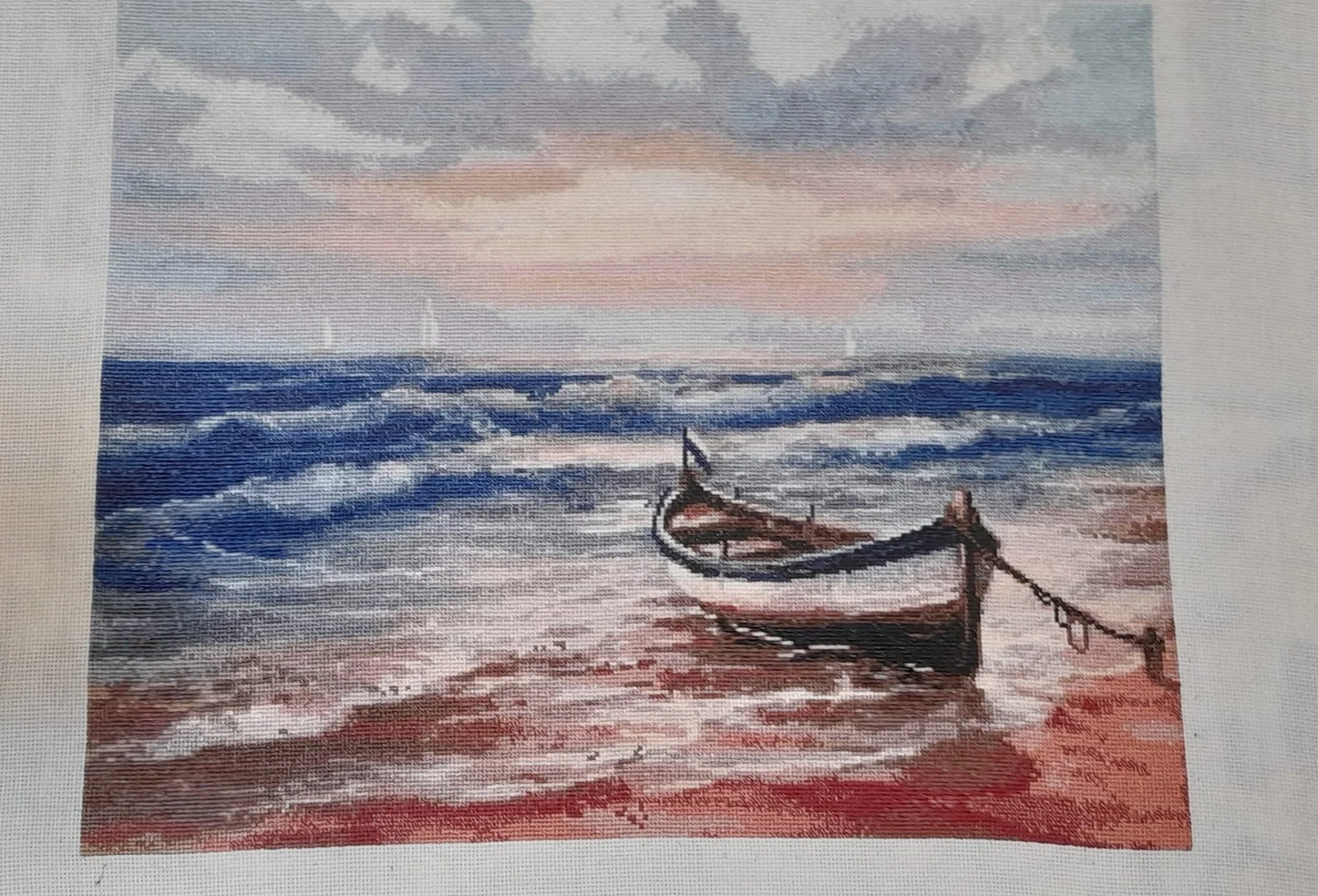 Комплектът на фирма Fantastic-R съдържа панама с игла, черно-бяла схема размер А4 и комплект конци готови за бродиране.