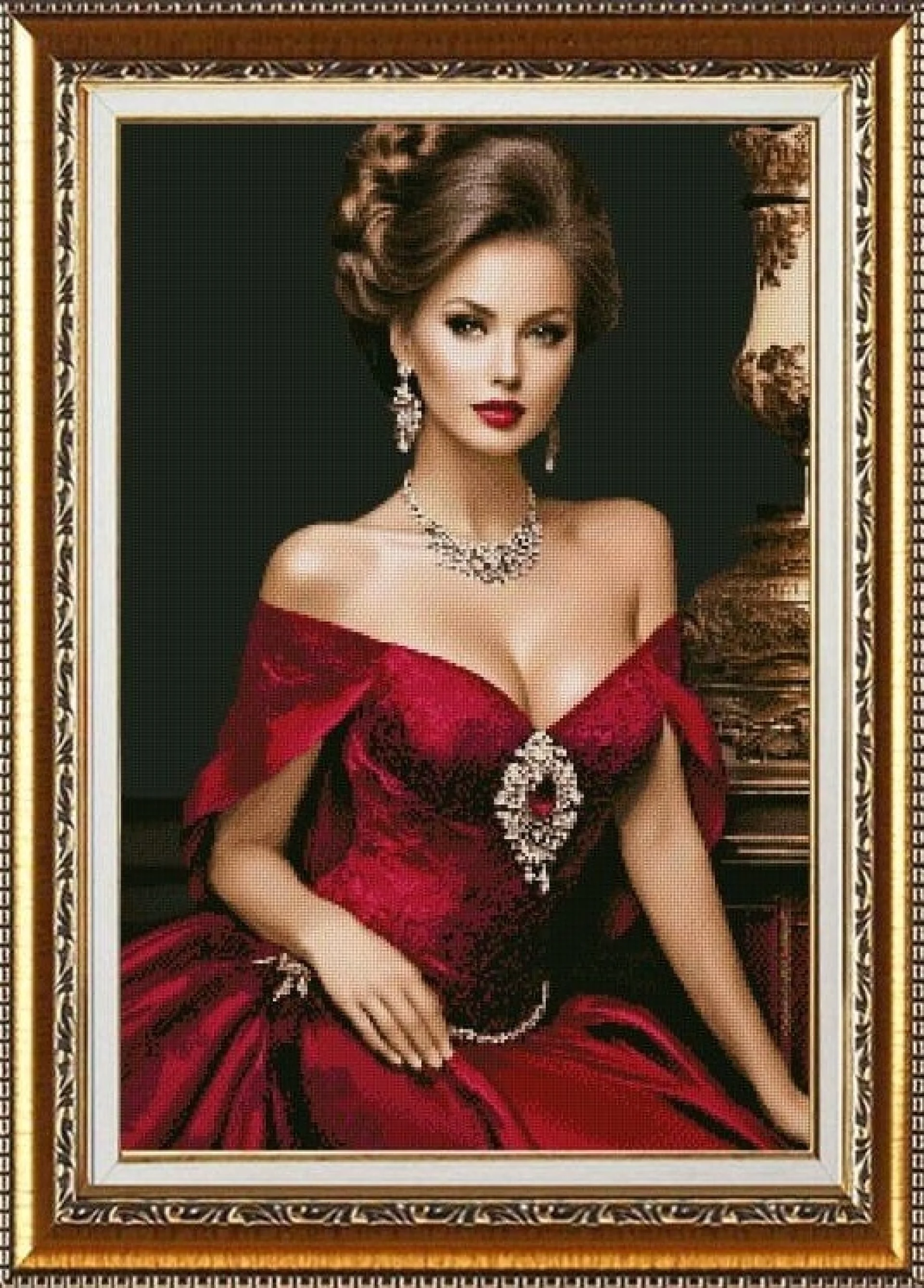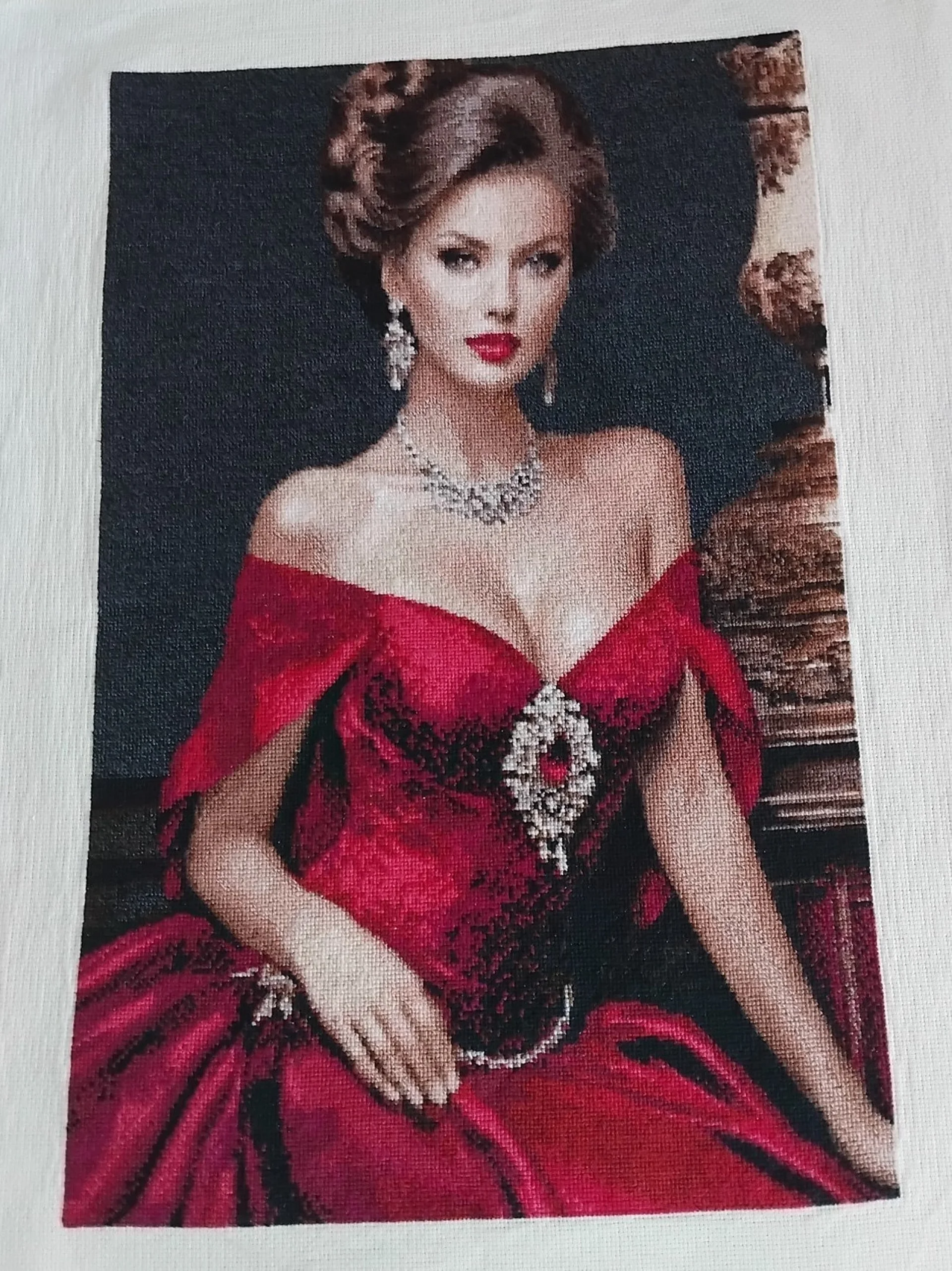 Комплектът на фирма Fantastic-R съдържа панама с игла, черно-бяла схема размер А4 и комплект конци готови за бродиране.