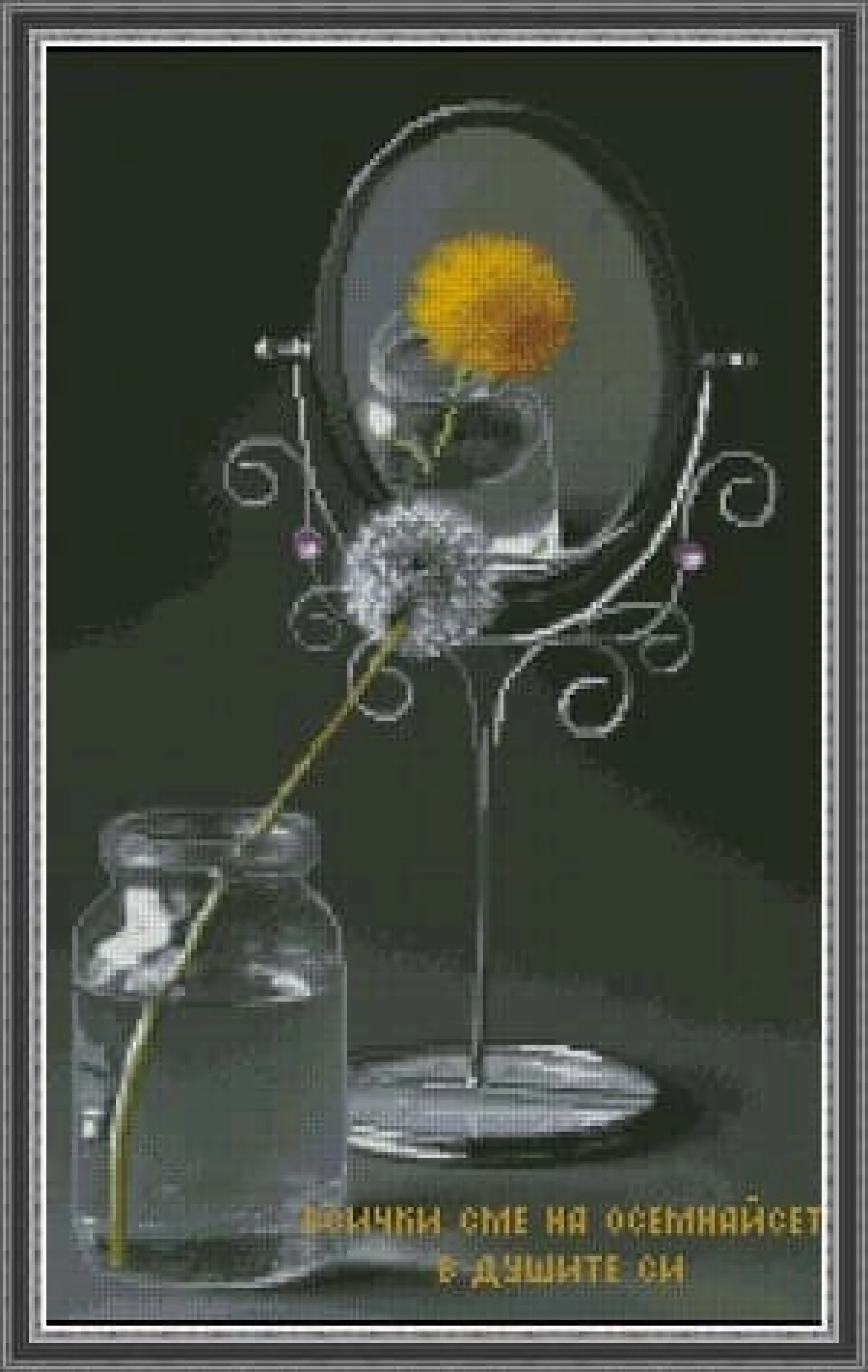 Комплектът на фирма Fantastic-R съдържа панама с игла, черно-бяла схема размер А4 и комплект конци готови за бродиране.
