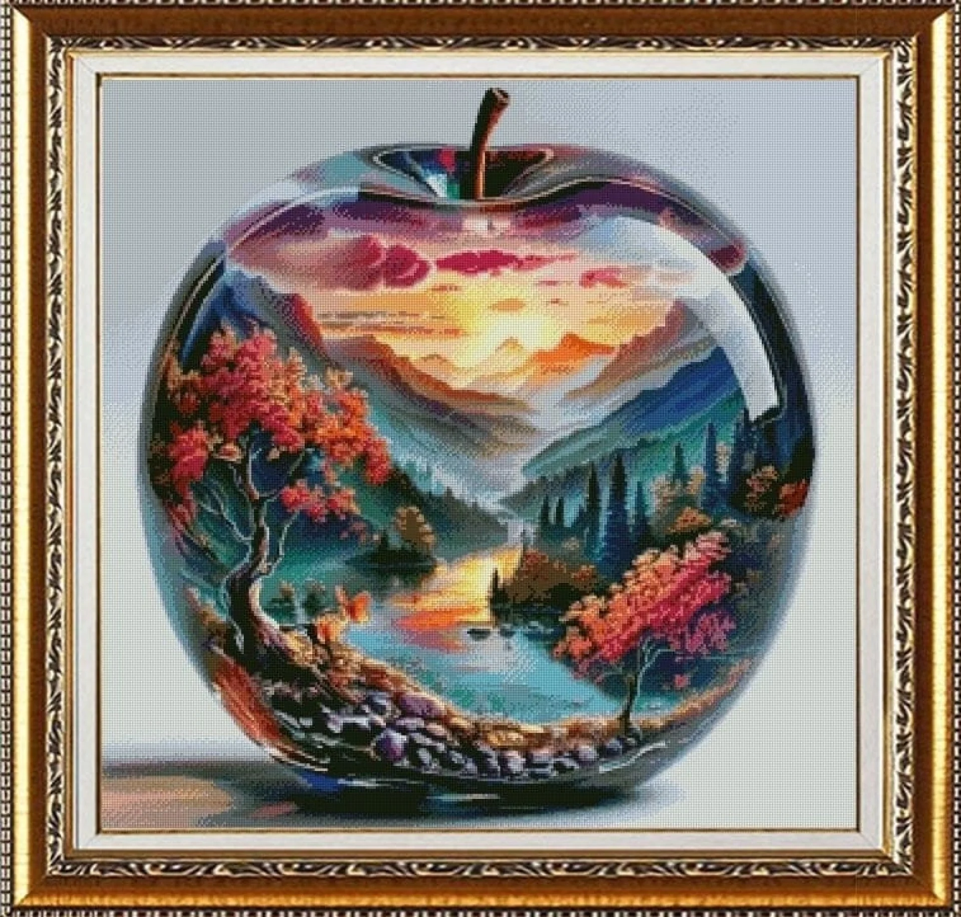 Комплектът на фирма Fantastic-R съдържа панама с игла, черно-бяла схема размер А4 и комплект конци готови за бродиране.