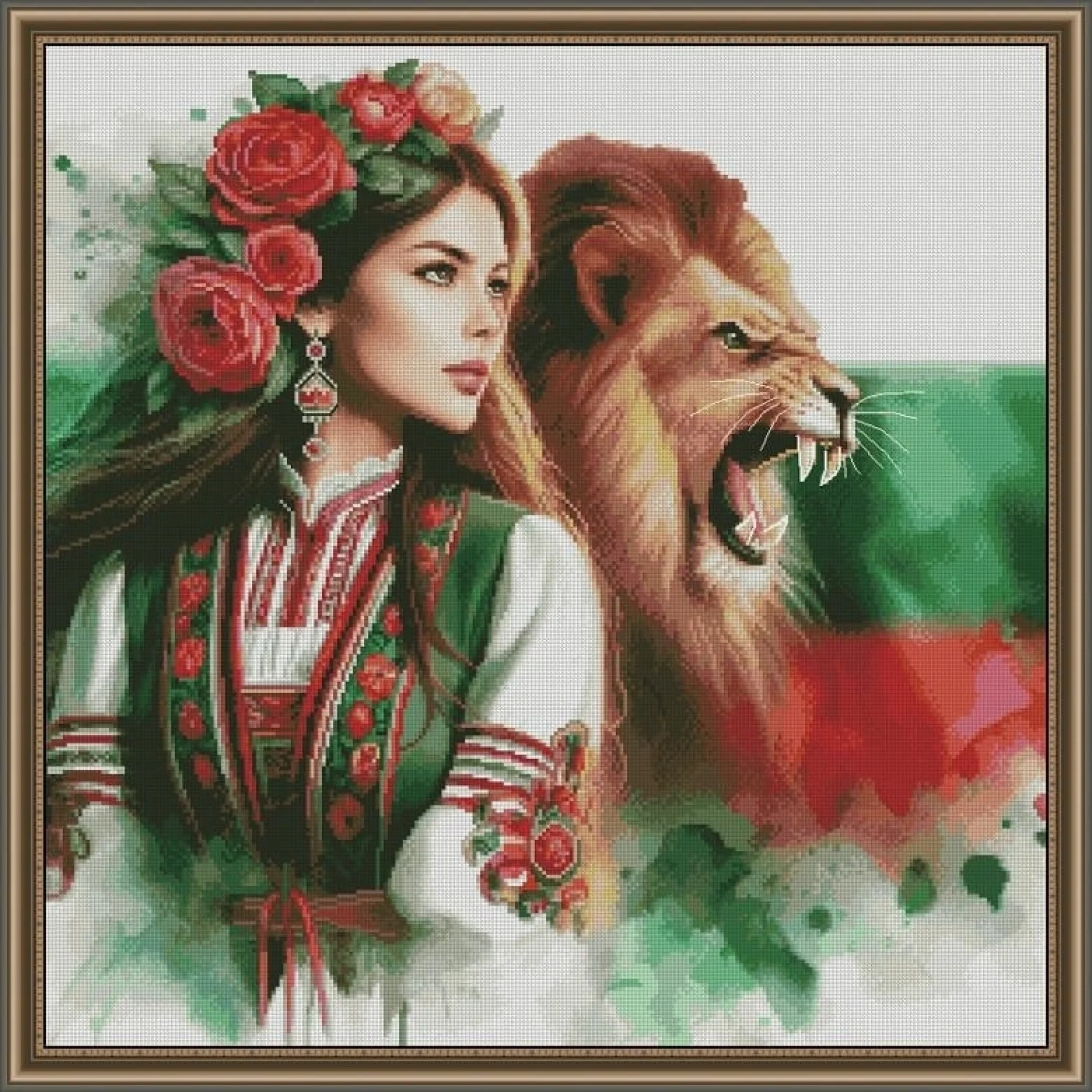 Комплектът на фирма Fantastic-R съдържа панама с игла, черно-бяла схема размер А4 и комплект конци готови за бродиране.