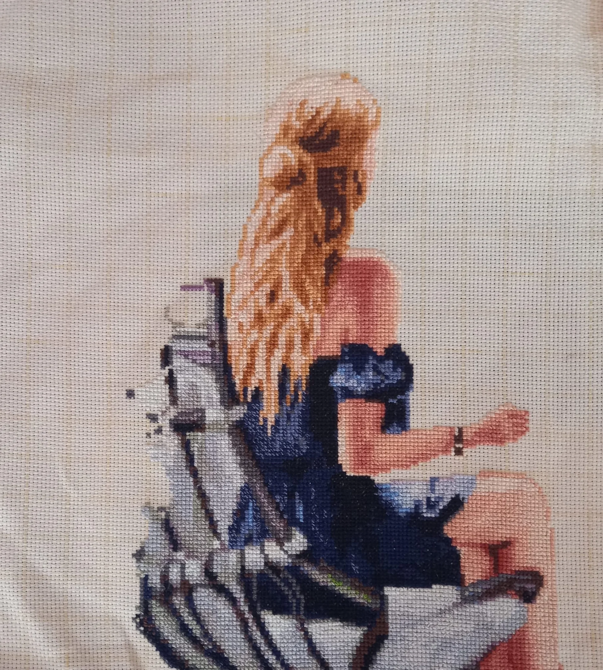 Комплектът на фирма Fantastic-R съдържа панама с игла, черно-бяла схема размер А4 и комплект конци готови за бродиране.