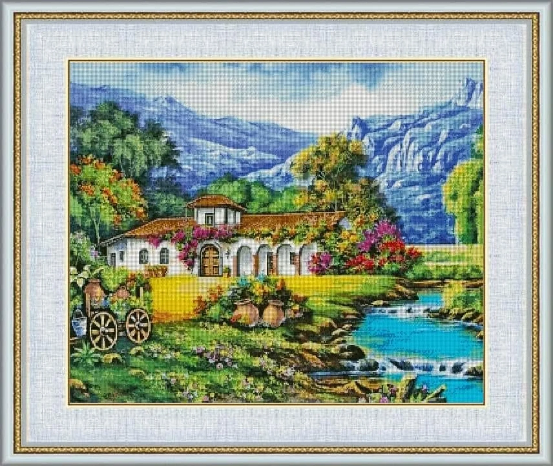 Комплектът на фирма Fantastic-R съдържа панама с игла, черно-бяла схема размер А4 и комплект конци готови за бродиране.