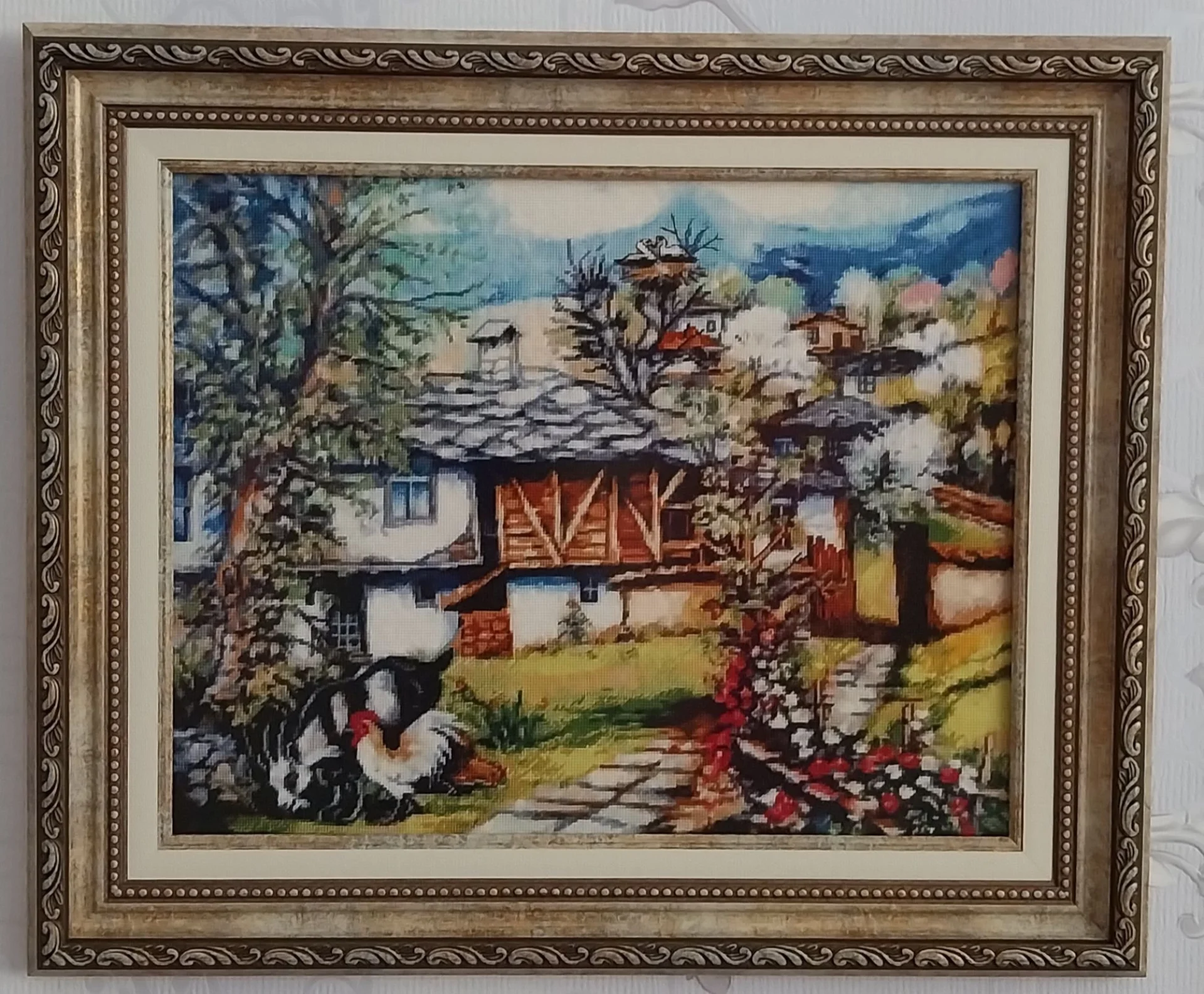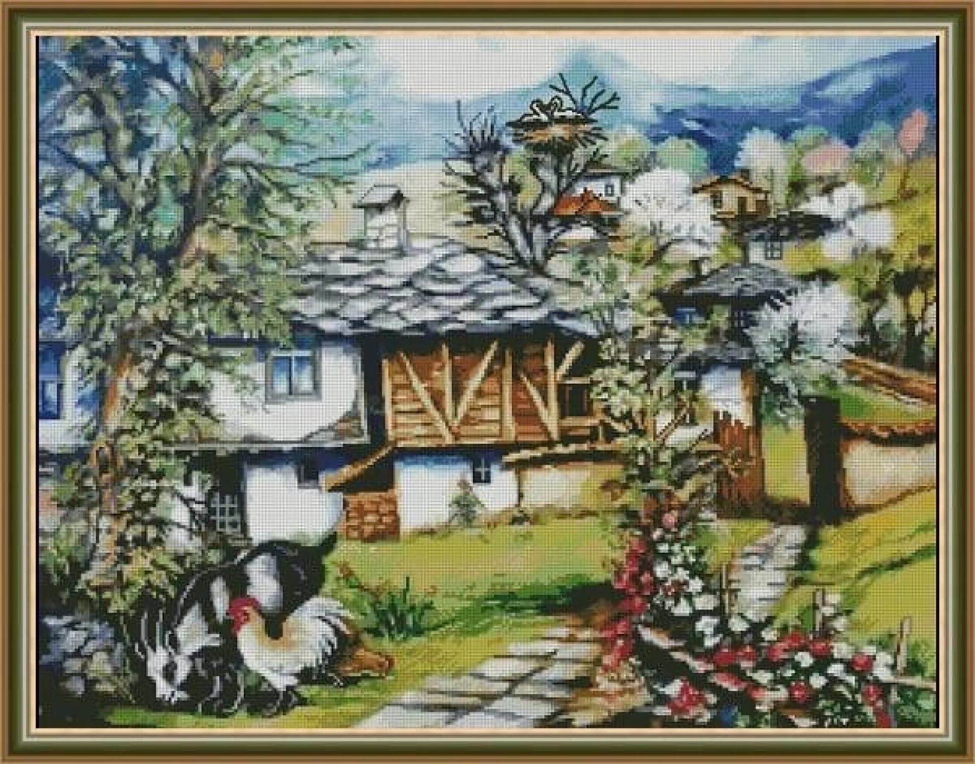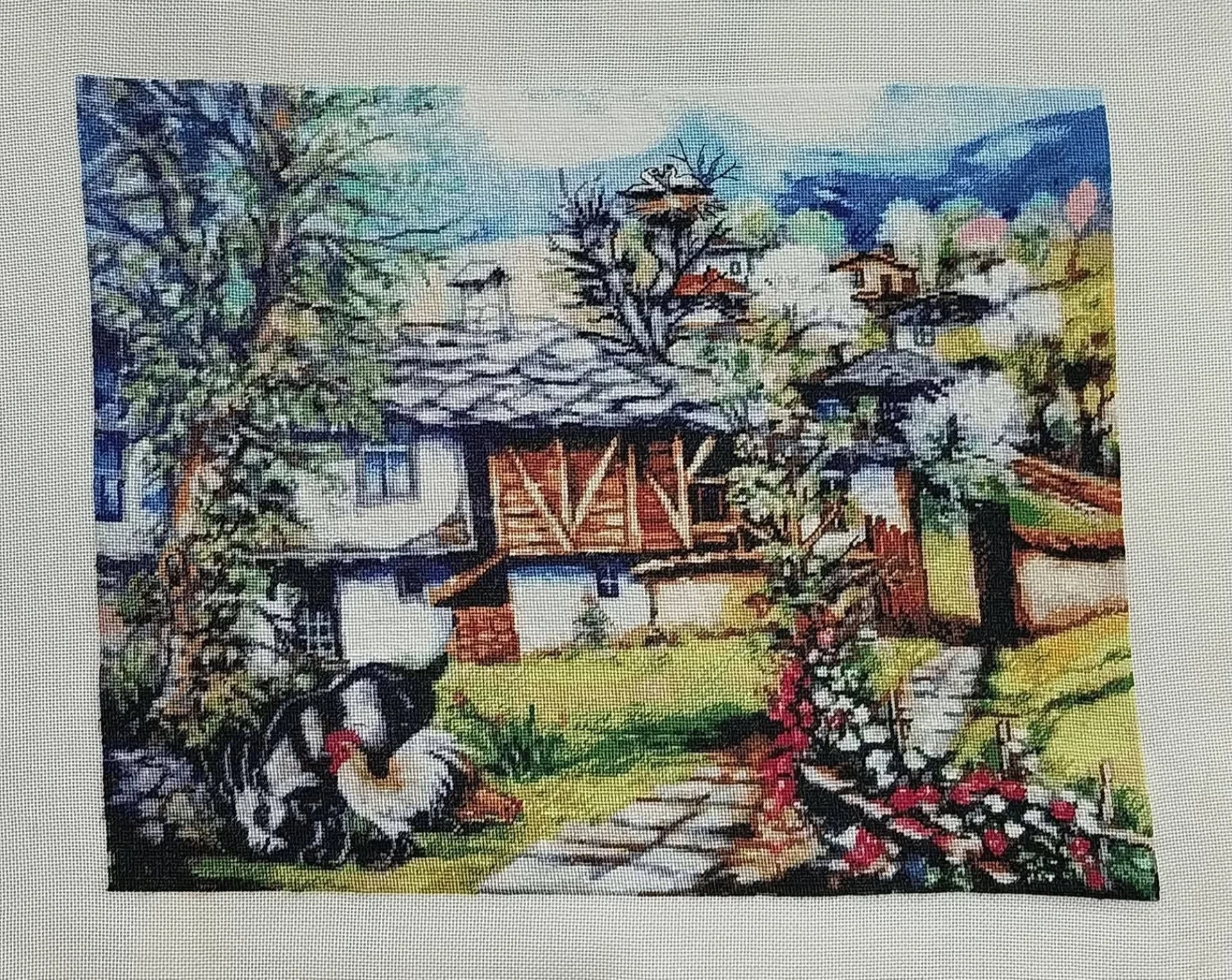 Комплектът на фирма Fantastic-R съдържа панама с игла, черно-бяла схема размер А4 и комплект конци готови за бродиране.
