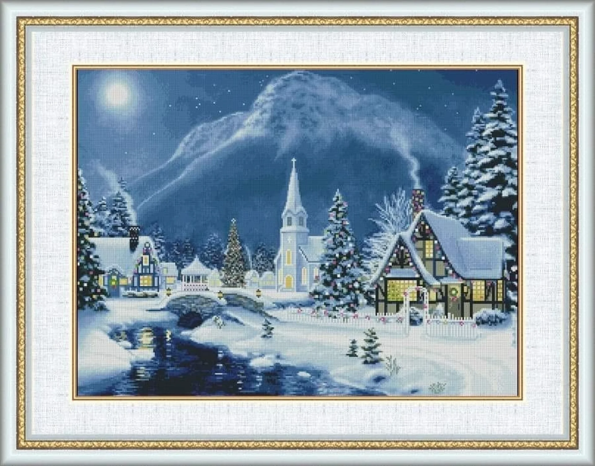 Комплектът на фирма Fantastic-R съдържа панама с игла, черно-бяла схема размер А4 и комплект конци готови за бродиране.